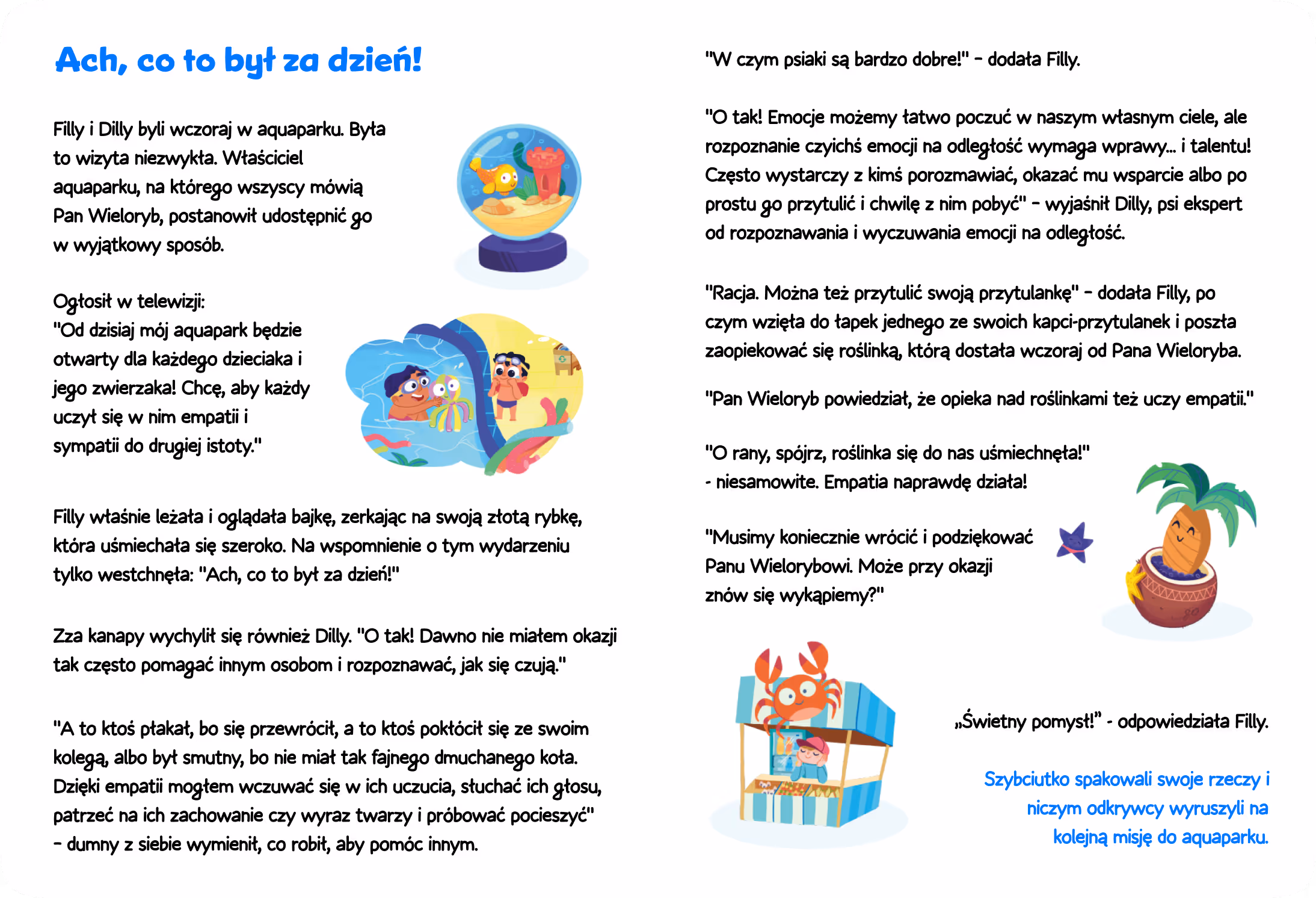 Wyobraź sobie, co lubią robić w wodzie, na przykład pływać lub bawić się.
